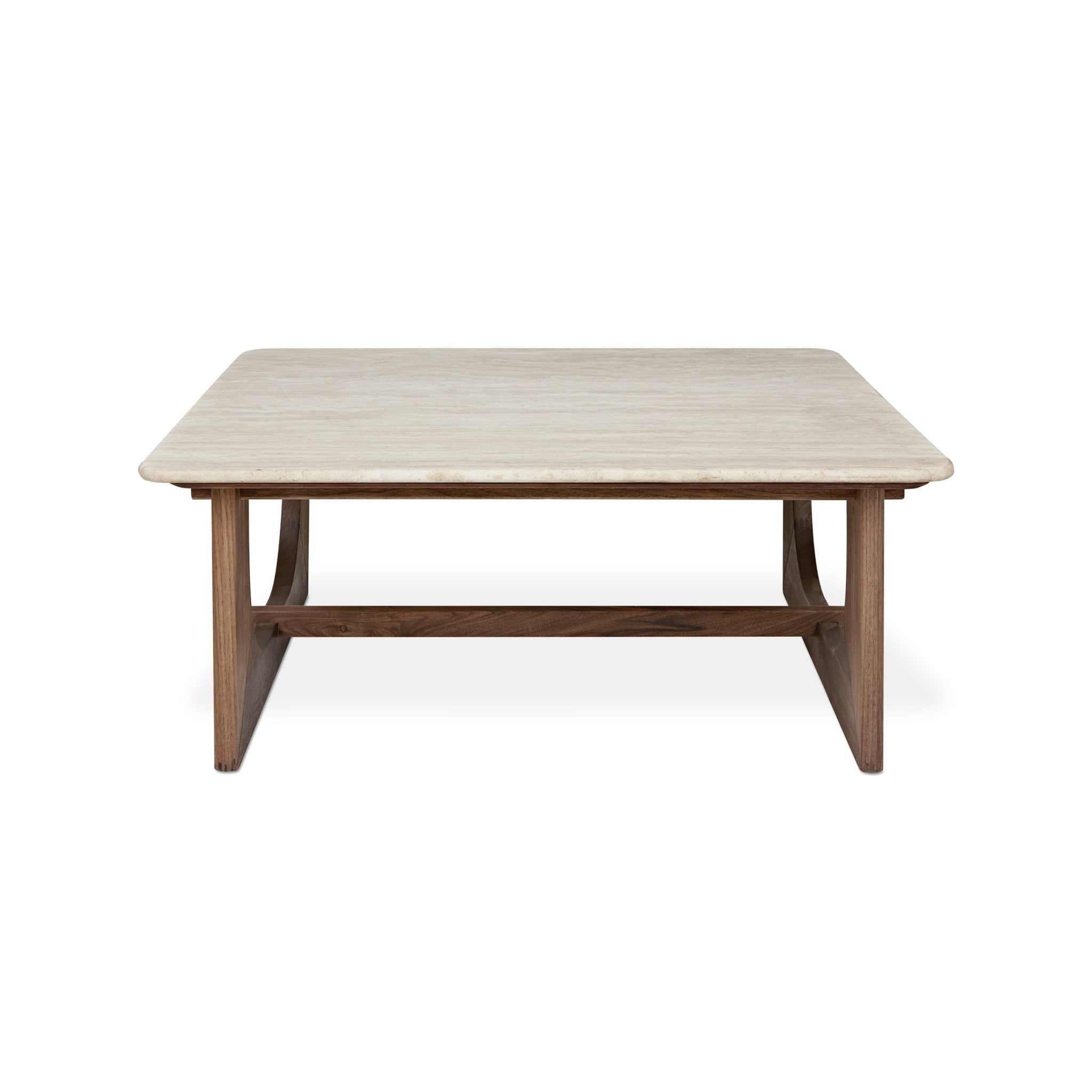 The Portico Coffee Table showcases an alluring travertine slab surface and elegantly crafted solid wood base in Walnut or White Oak. The warm, natural travertine grain creates an organic beauty that is unique to each design, reinforced by gently curved corners. These curves are mirrored in the base - with graceful forms and thoughtful proportions that blend the materials into a unified, sculptural accent. The Portico Coffee Table is available in square or rectangular size. Also available as an End Table.
